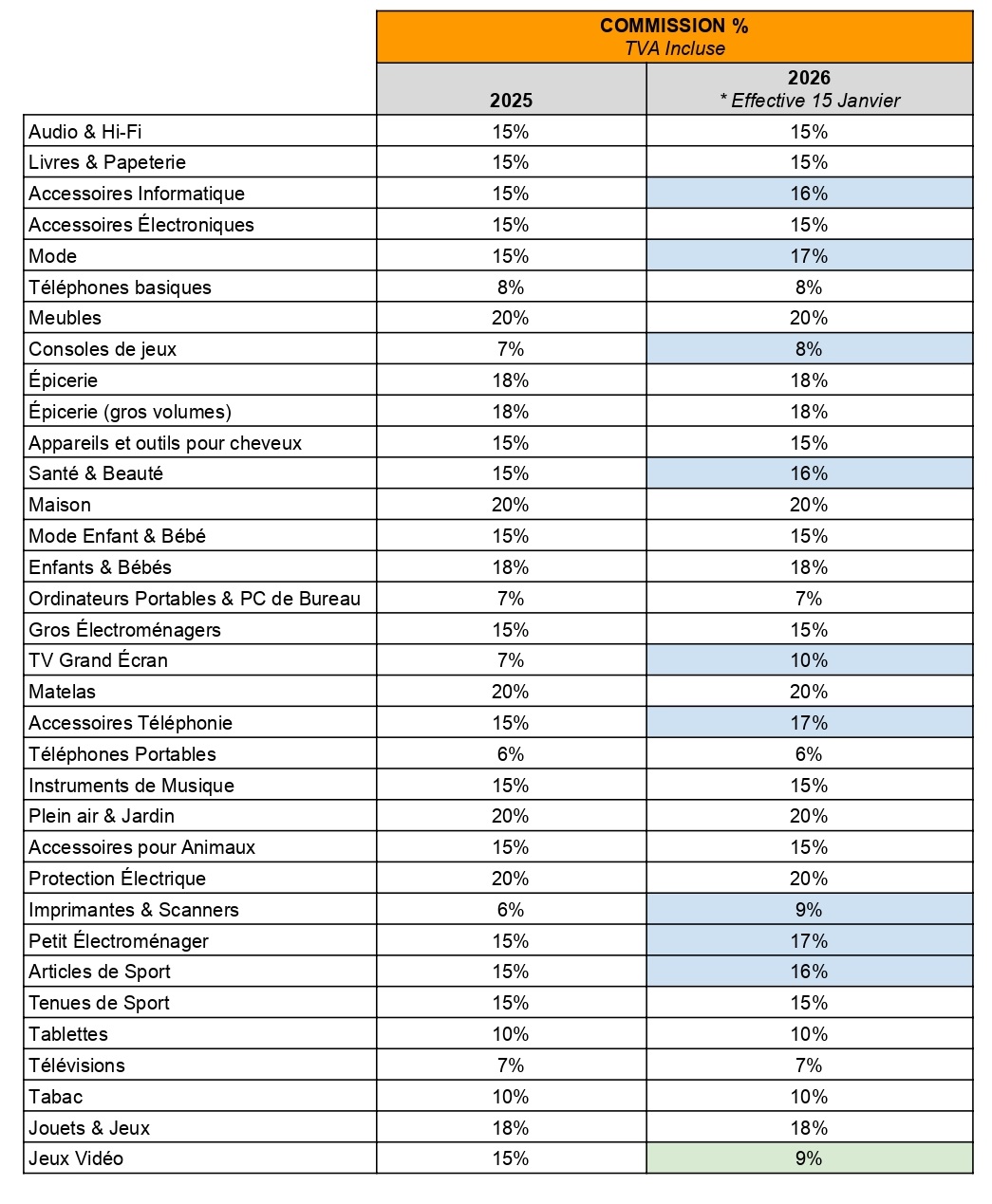 LES COMMISSIONS S’APPLIQUERONT DIRECTEMENT SUR CHAQUE ARTICLES !